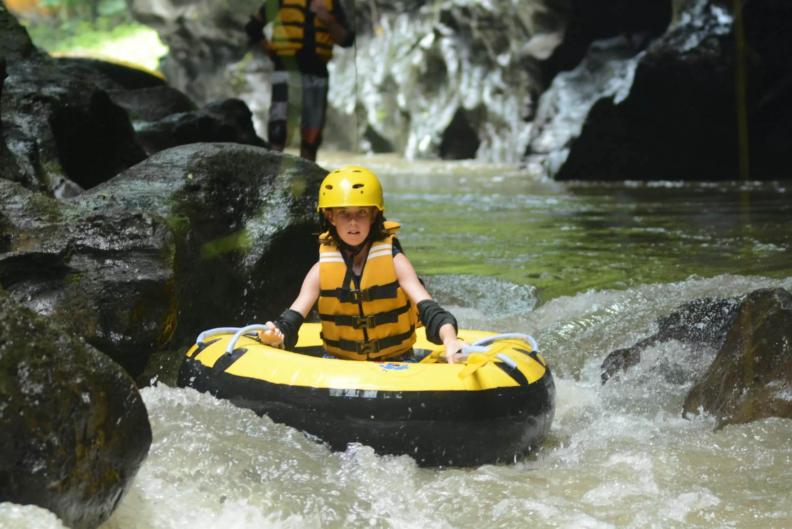 - Safety gear helmet boots and life jacket provided